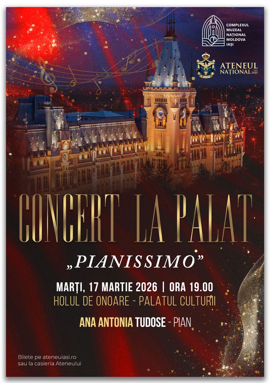 Evenimentul va avea loc marți, 17 martie 2026, de la ora 19.00, în Holul de Onoare al Palatului Culturii.