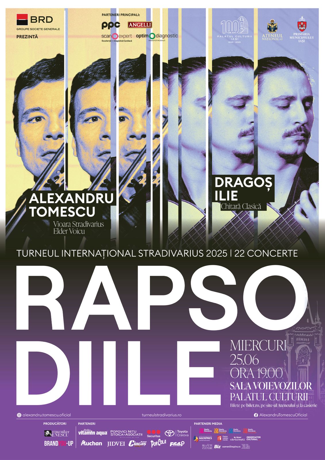 Complexul Muzeal Național „Moldova” Iași, în parteneriat cu Ateneul Național din Iași invită publicul la un nou eveniment sub genericul „Concert la Palat”: „Rapsodiile”, susținut de Alexandru Tomescu și Dragoș Ilie, miercuri, 25 iunie 2025, de la ora 19.00, la Palatul Culturii.